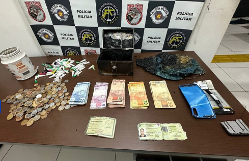 Dentro da residência, os policiais localizaram diversos pinos de entorpecentes, dinheiro proveniente da venda de drogas e constataram que uma quantidade significativa já havia sido queimada, causando prejuízo estimado em R$ 20 mil ao tráfico.