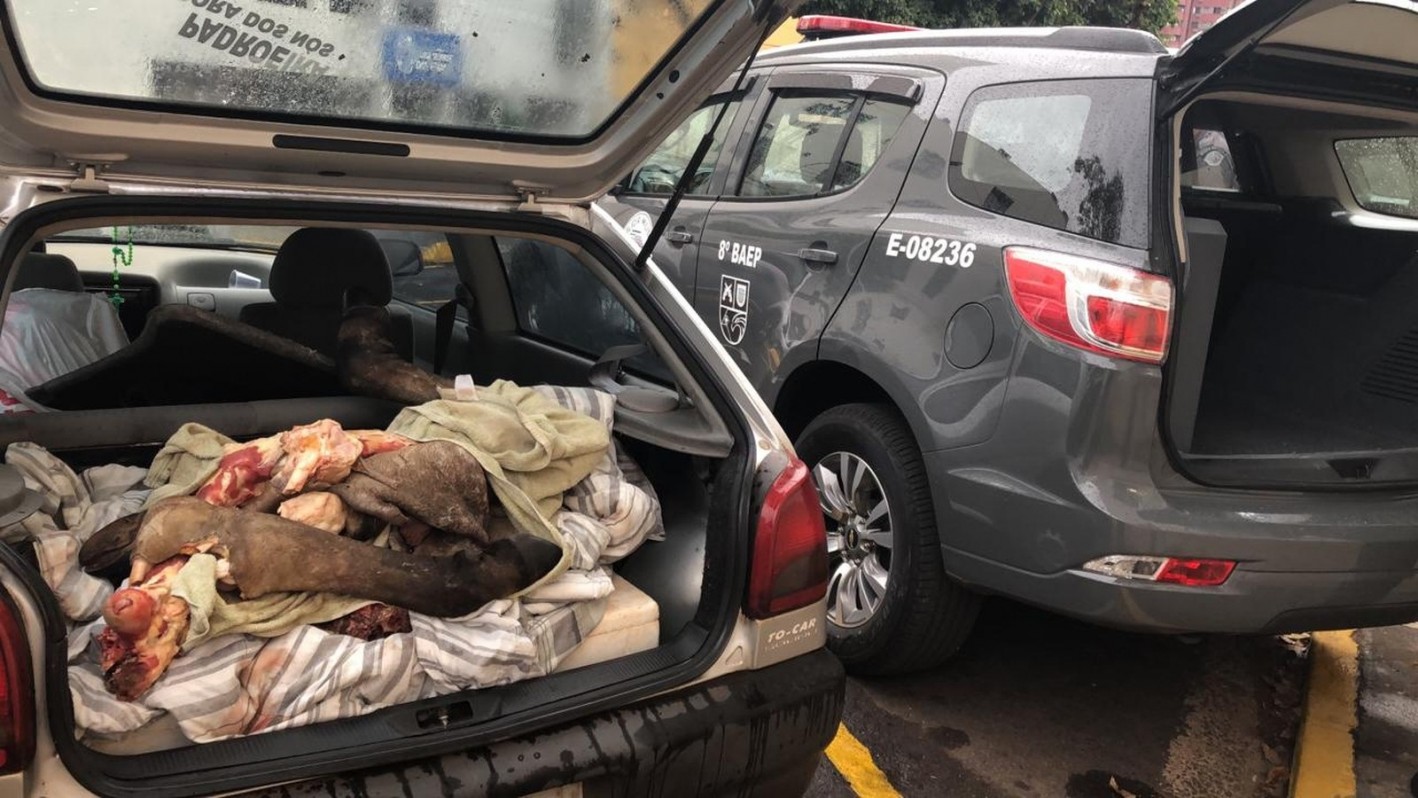 Com ele, os policiais encontraram uma mochila com vários cortes de carne bovina ainda quente.