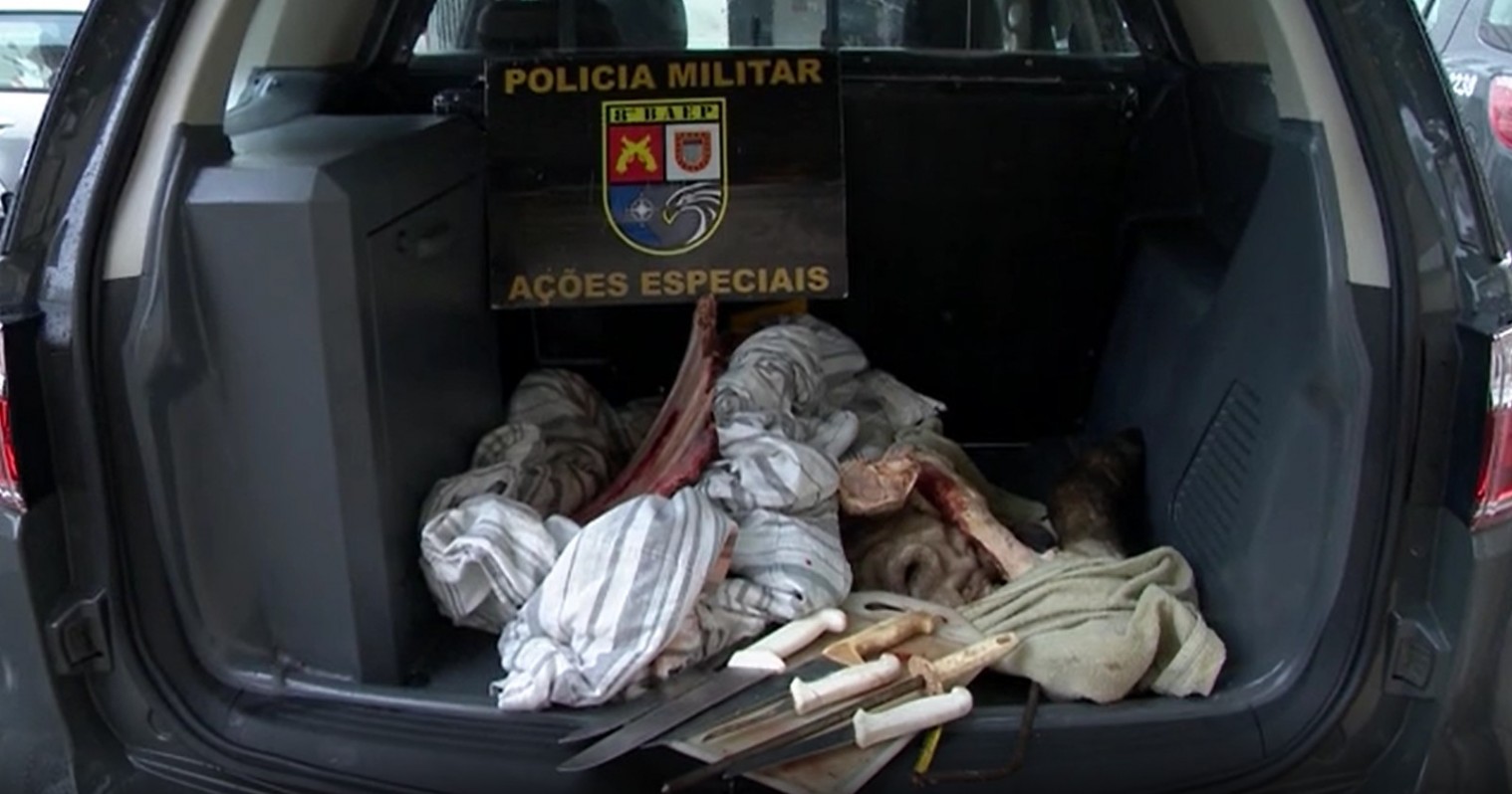 Segundo a PM, o proprietário do animal furtado reconheceu as partes da novilha apresentadas a ele.