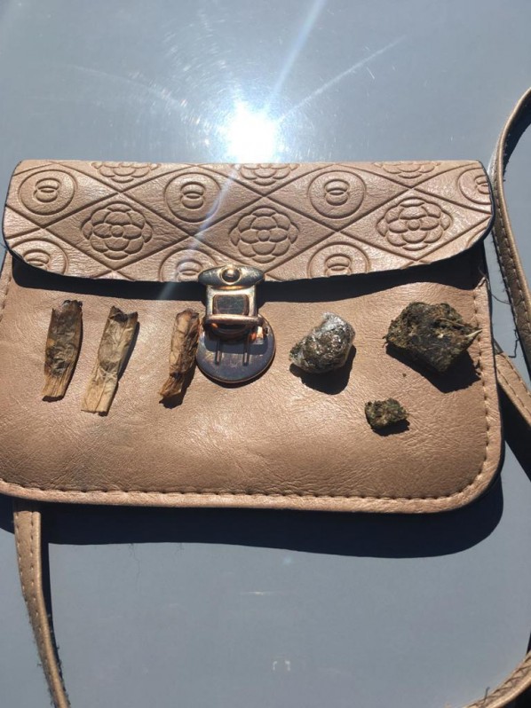 Chegando ao local, policiais fizeram contato com o indivíduo, maior de idade, que durante conversa apontou de imediato dois cigarros artesanais de maconha em uma viga de madeira da garagem da residência e um outro cigarro artesanal, além de dois invólucros da mesma droga em uma carteira feminina, relatando que pertenceriam a sua amásia, também maior de idade.