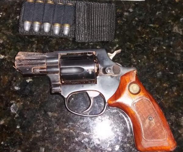 Em seguida, em contato com o autor, o mesmo informou onde havia dispensado a arma de fogo, um revolver da marca Taurus, calibre 38, que foi localizada pela guarnição e apresentada no Plantão Policial, onde a ocorrência foi apresentada.