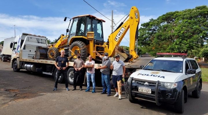 Um trabalho conjunto das policias civil e militar resultou na recuperação de uma máquina Retro Escavadeira furtada em Tupã. Por volta das 22h30 desta segunda-feira (22), foi comunicado o furto e em menos de 12 horas a máquina havia sido recuperada pela polícia em uma cidade do Paraná.De acordo com informações, os trabalhos com a máquina terminaram por volta das 21h de ontem. Ela foi furtada numa obra nas proximidades da rodoviária de Tupã.Tão logo a polícia foi informada foi iniciado um trabalho investigativo, sendo a retroescavadeira localizada na cidade de Colorado, no Paraná."Muito obrigada ao delegado Paulo Pardo Soares, aos investigadores Marcio, Toni e Thiago e para o Sargento Rodrigo Morcilo por mostrarem que aqui (em Tupã) é trabalho!!", declarou os proprietários.