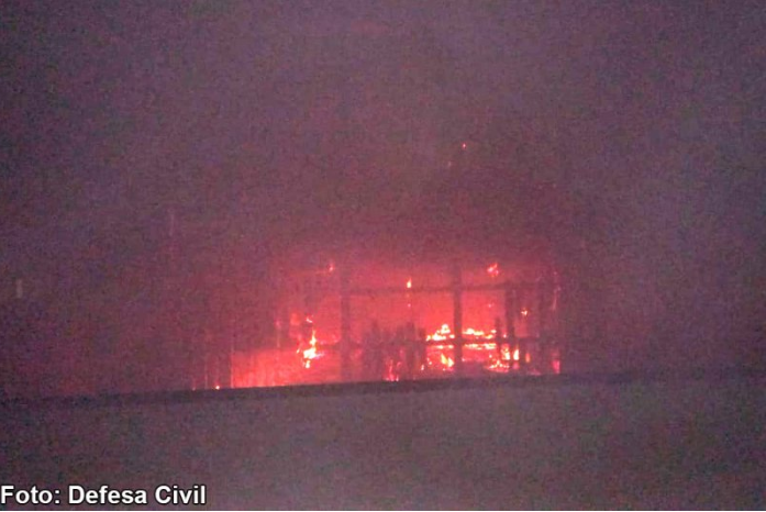 A Defesa Civil complementa que: “O incêndio destruiu completamente a estrutura das paredes do cômodo atingido, causando também danos aparentes ao teto e ao piso. O imóvel principal é um barracão de alvenaria, sendo que, nos fundos, havia um cômodo construído com material aparentando ser drywall”.