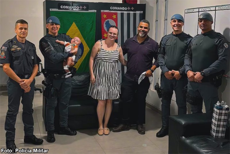 O policial militar ressalta que: "Na data de 26 de fevereiro de 2026, esta equipe foi agraciada com a visita da família na Base da Polícia Militar, ocasião em que manifestaram sincera gratidão pelo pronto atendimento e pela intervenção que foi fundamental para preservar a vida da criança".