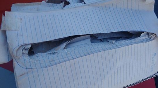 Ainda de acordo com a polícia, a faca usada pelo agressor estava escondida no caderno dele, que foi achado com recorte nas folhas no formato da faca para encaixá-la dentro.
