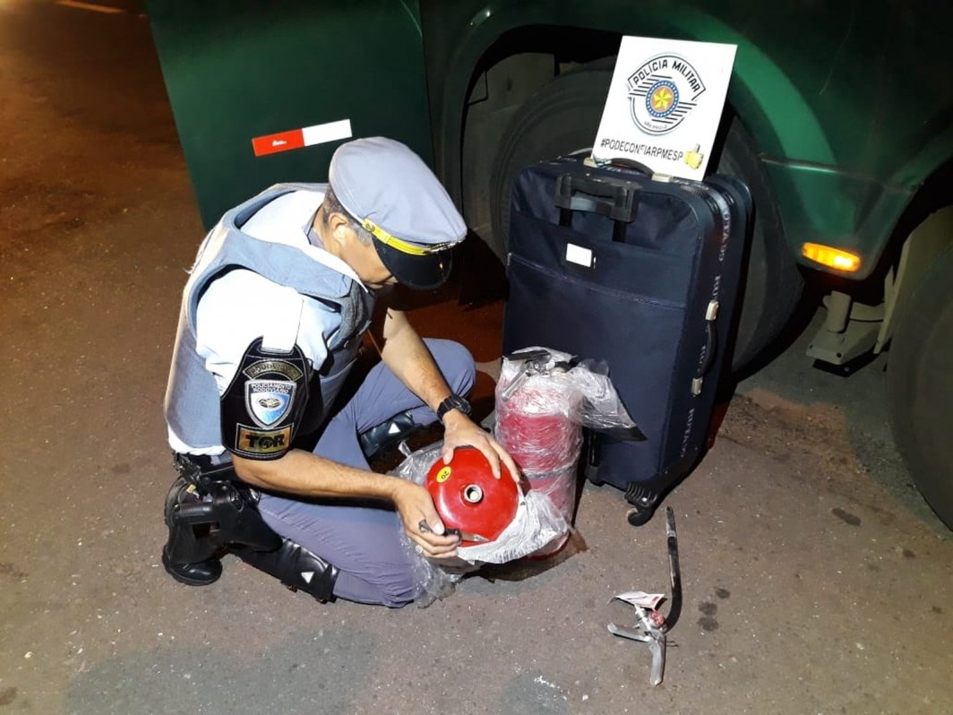 A Polícia Militar Rodoviária apreendeu 18 tabletes de cocaína que eram transportados dentro de extintores. O material foi encontrado em um ônibus que foi abordo na madrugada desta terça-feira (5), na Rodovia Raposo Tavares (SP-270), em Presidente Venceslau. Um peruano, de 39 anos, morador de Corumbá (MS), foi preso.
