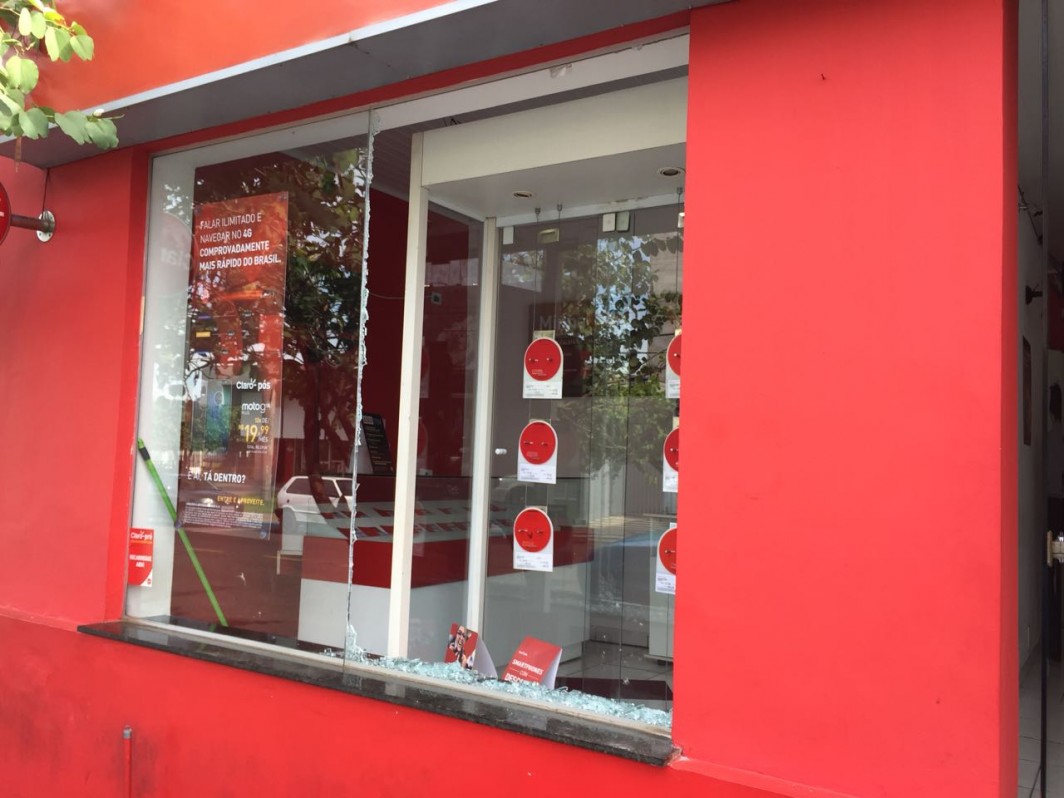 Provavelmente durante a noite, um ladrão destruiu a fachada de vidro da loja e entrou no local. O prejuÃzo imediato foi apenas R$ 50, já que os aparelhos celulares e outros produtos são guardados em um cofre.