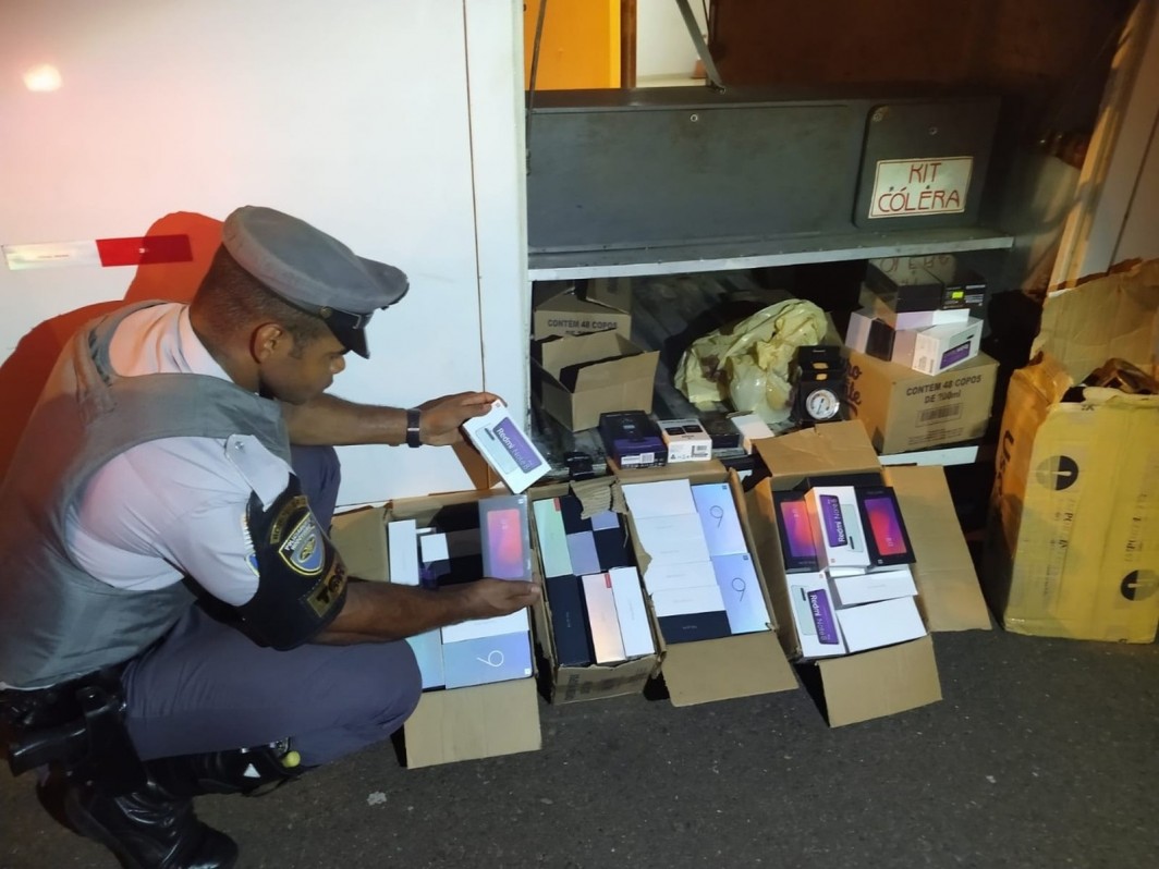A Polícia Militar Rodoviária apreendeu vários celulares e outros produtos eletrônicos sem nota fiscal na noite desta terça-feira (26), no km 616,5 da Rodovia Raposo Tavares (SP-270), em Presidente Venceslau.