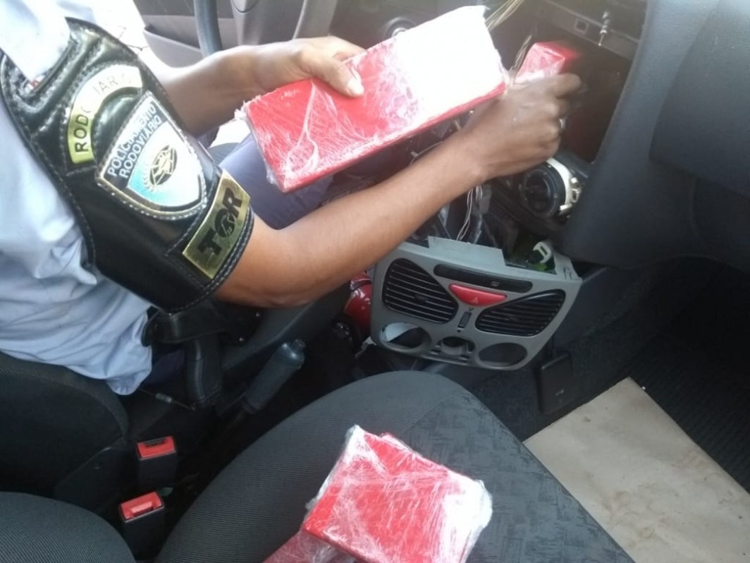 Durante a vistoria, os policiais encontraram os mais de 100 tabletes da droga que estavam escondidos no para-choque, no painel e no banco traseiro do carro.