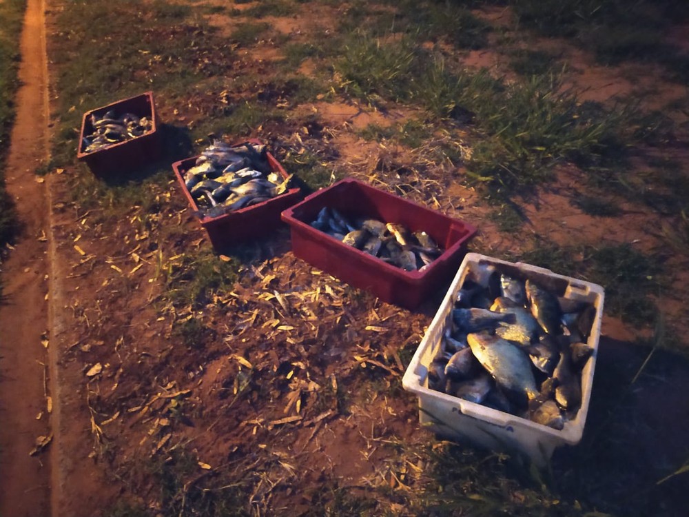 Ao realizar a abordagem, a polícia constatou que havia dois rapazes no local e a existência de peixes das espécies piau-três-pintas, piranha, tilápia e tucunaré, todos com marcas aparentes de terem sido capturados com a utilização de redes de pesca.