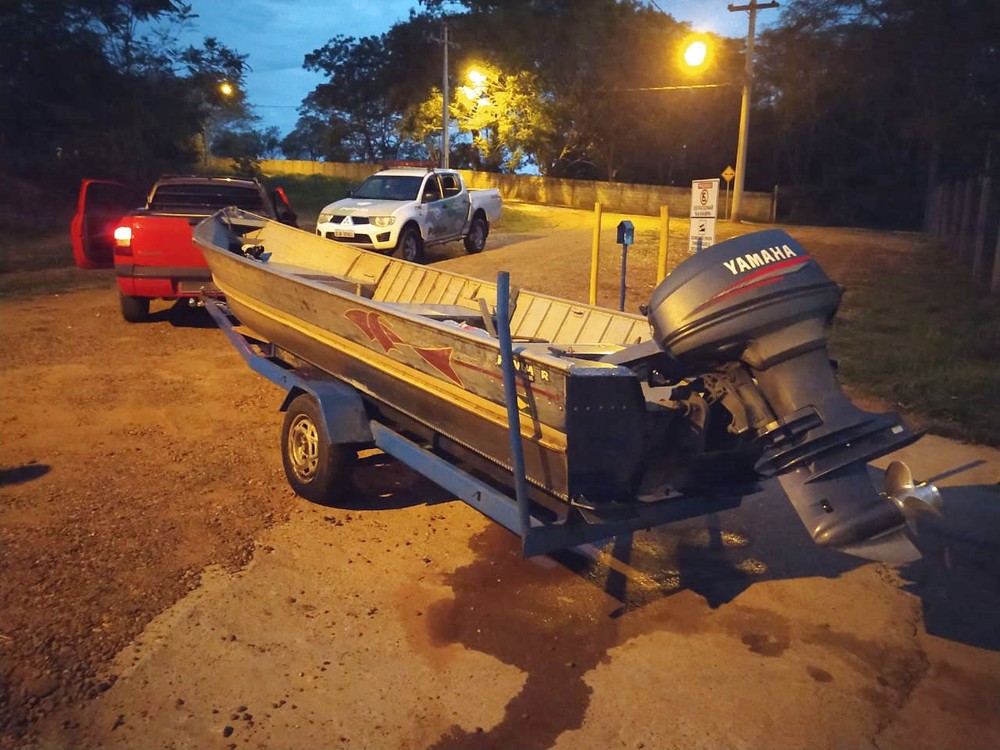 A corporação explicou que, durante patrulhamento noturno, uma equipe observou que, através de um veículo, uma embarcação estava sendo retirada do Rio Paraná.