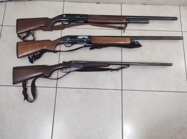 Os homens foram levados à delegacia da Polícia Civil, onde foram apreendidas temporariamente duas espingardas de calibre 12 e uma espingarda de calibre 20, até que seja verificada a veracidade das documentações apresentadas e suas informações.