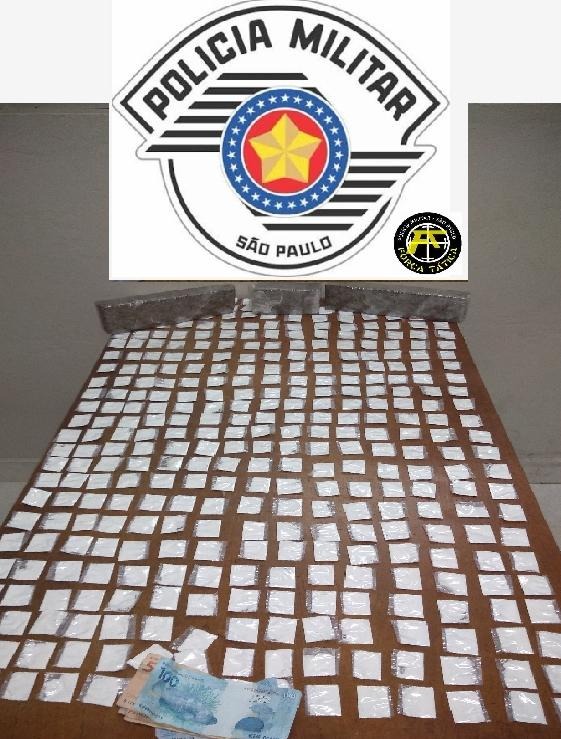 Dentro da embalagem foram localizados dois tabletes e meio de maconha e em outra sacola, 357 papelotes de cocaína.