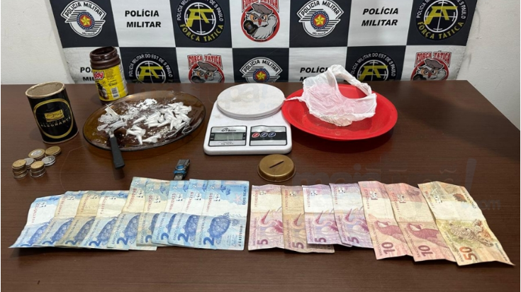 No último sábado, a equipe da Força Tática da Polícia Militar de Tupã, composta pelo Sargento Fantes e os Cabos Alex e Alan, realizou a prisão de um indivíduo em flagrante por tráfico de drogas na Rua Assur Bittencourt, no bairro Bela Vista.