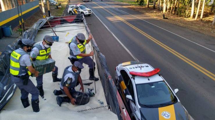 O veículo foi abordado por volta das 16h, no quilômetro 276 da rodovia Assis Chateaubriand (SP-425), sentido a São José do Rio Preto. Ao vistoriar o caminhão, os policiais encontraram a droga debaixo de uma carga de arroz.