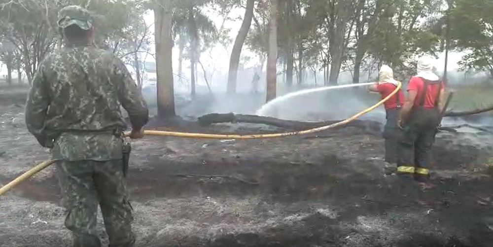 Ainda em razão das chamas, equipes do Corpo de Bombeiros e da Polícia Militar Ambiental tiveram de atuar para conter o incêndio que consumiu também a vegetação existente no entorno.
