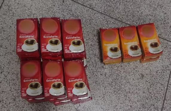 Ao perceberem a movimentação, três colaboradores abordaram o suspeito e encontraram duas mochilas onde ele havia guardado 27 pacotes de café, 21 do tipo extraforte e 6 tradicionais, avaliados em R$ 33,99 cada. O homem foi contido até a chegada da Polícia Militar.