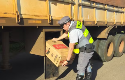 De acordo com a Polícia Militar Rodoviária, a mercadoria estava em um caminhão trator com semirreboque que carregava soja. O veículo e a carroceria tinham placas de Londrina (PR).