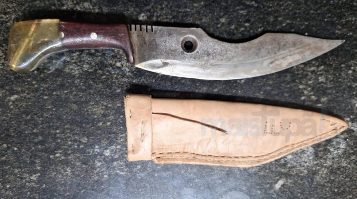 A equipe da Polícia Militar, composta pelos cabos Soares e Dutra, chegou rapidamente ao local e encontrou o agressor escondido dentro de um dos quartos da casa. Durante a vistoria, os policiais localizaram uma faca artesanal sob um travesseiro, que teria sido usada por ele na agressão anterior.