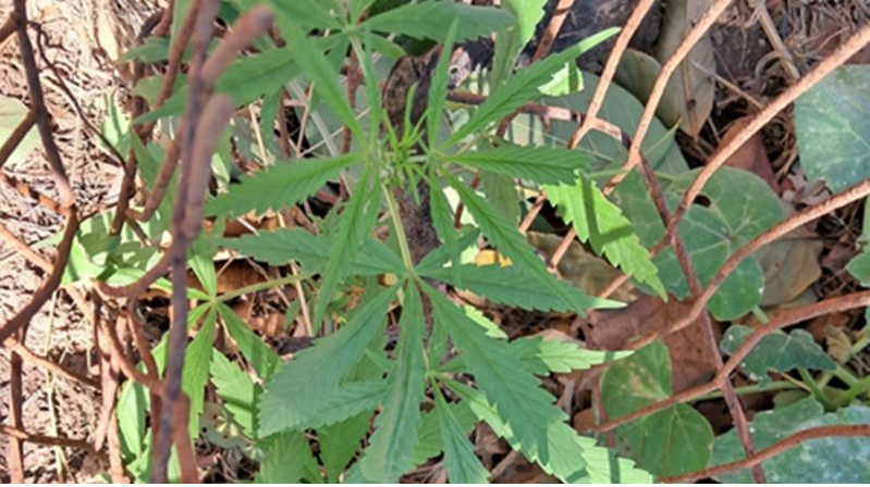 De posse das informações, a equipe realizou diligências pelo fundo do quintal do imóvel em questão e foi visualizado sobre a tela de proteção que delimita o terreno, dois pés de planta cannabis, medindo 40 cm, após localizar o tio, de 47 anos, proprietário do imóvel, foi realizada busca domiciliar e encontrados mais uma planta cannabis na frente da casa, próximo a um muro e mais um estojo deflagrado de fuzil.