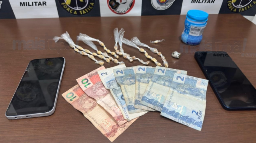 Durante a abordagem, o homem admitiu estar com entorpecentes e disse aos policiais: “Tô com o B.O no bolso, senhor, é tudo meu”. Na revista pessoal, foram encontrados um pote plástico com 41 porções de crack, uma porção de maconha, dois celulares e R$ 30 em dinheiro trocado.