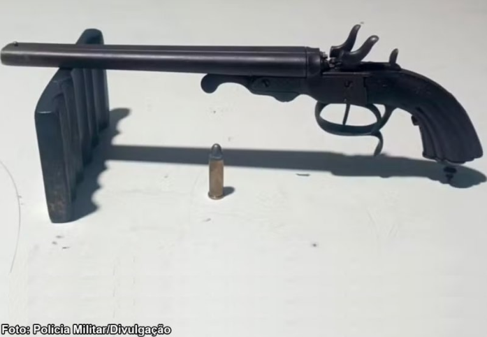 Após o registro da ocorrência, a Polícia Militar fez a durante abordagem a um carro. No veículo, os policiais localizaram um revólver modelo garrucha calibre 38, municiado com uma bala, o qual o suspeito disse que era dele.