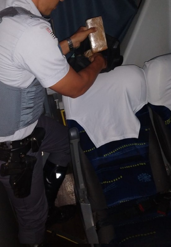 Segundo a polícia, a droga era levada por um passageiro em uma mochila, localizada atrás da última poltrona do veículo.