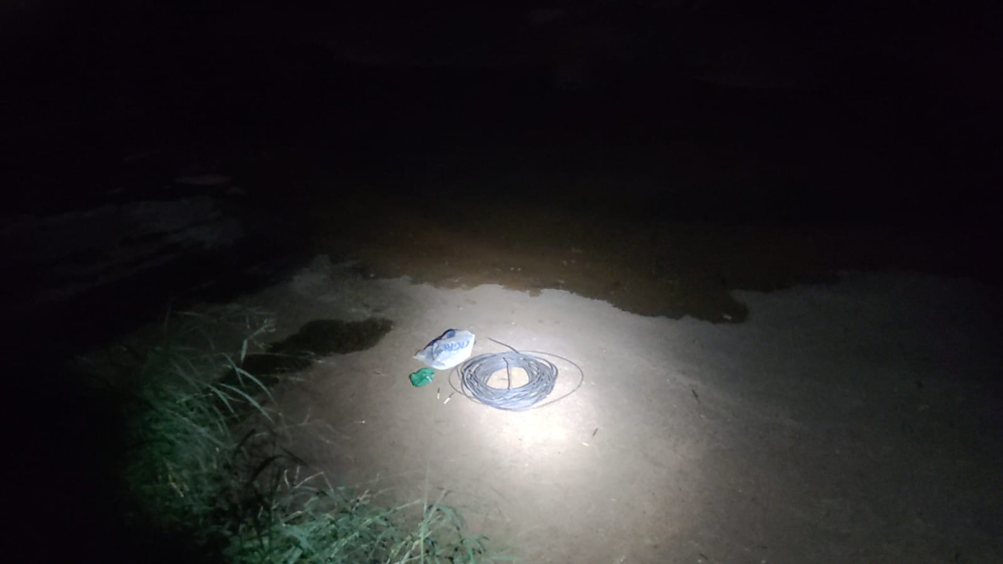 No local, o agente informou que havia recebido uma ligação do irmão, que é segurança do estabelecimento, e disse que havia escutado um barulho aos fundos do frigorífico, na região de mata, próximo de onde teriam sido registrados diversos furtos de fiação nos últimos tempos.