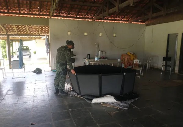 Quatro deles estavam debilitados, com a cabeça e o pescoço machucados. Outros 12 tinham as barbelas e esporas cortadas. Além dos animais, a polícia localizou um rebolo, espaço onde é realizada a rinha, com traços de uso recente.