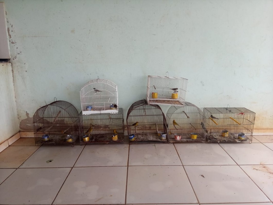 Os pássaros - sendo nove canários-da-terra-verdadeiros e três coleiros papa-capim – foram apreendidos e libertos na natureza e as sete gaiolas foram apreendidas e destruídas.