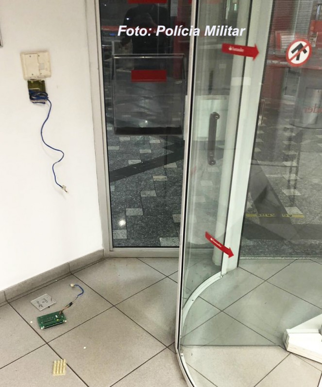 Ao se aproximarem da agência, os policiais avistaram o criminoso com uma barra de ferro nas mãos, danificando o sistema de monitoramento. Esse, percebendo a chegada dos policiais, se escondeu dentro do estabelecimento.