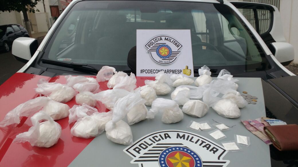 Equipe da PolÃcia Militar em fiscalização a um ônibus da empresa expresso de Prata, com itinerário São Paulo X Tupi Paulista, na Rodovia Comandante João Ribeiro de Barros, na base de Tupã, ao vistoriar o passageiro da poltrona 41, foi localizado em sua bolsa, mil e sessenta e seis (1066) porções de cocaÃna em sachês.