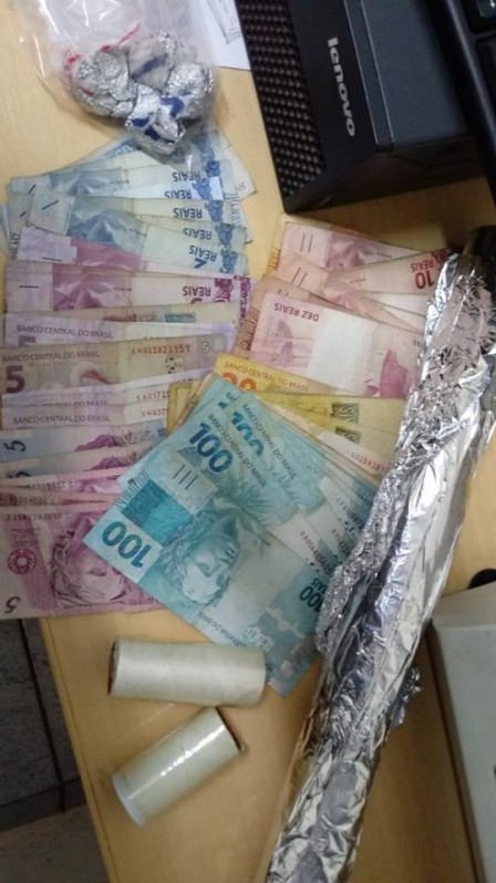 Diante do exposto policiais compareceram no endereço de D.G.R.S. que ao notar a presença da viatura tentou se evadir pelos fundos da casa, sendo detido. No interior da casa foi encontrada a quantia de R$1.645,00 em notas diversas, além de papel filme e alumínio utilizado para o comércio de drogas. No fundo da residência, foram encontradas quatro pedras de crack. (20 gramas).