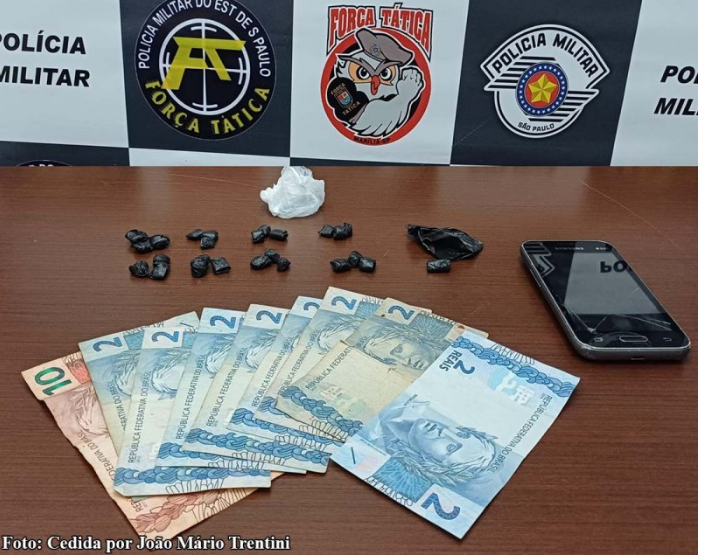 A Polícia Militar de Tupã, através da equipe de Força Tática do 1º sargento Rogério, cabo Avellaneda, cabo Vagner e soldado Mariotti, prendeu um indivíduo de 25 anos de idade com 26 porções de crack e uma quantia de R$ 26,00 em dinheiro, na noite desta sexta-feira, dia 2. A ocorrência de natureza “tráfico de drogas – flagrante” foi registrada por volta das 20h00 e o fato aconteceu no Jardim Bela Vista, em Tupã (SP).