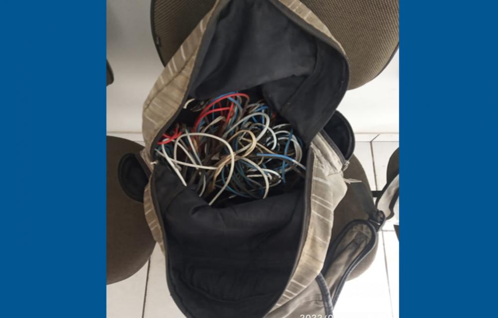 Durante a revista pessoal foi encontrado em uma bolsa carregada por ele diversos fios e um alicate. Diante dos fatos o jovem confessou que havia furtado e apontou que retirou de uma residência desocupada.