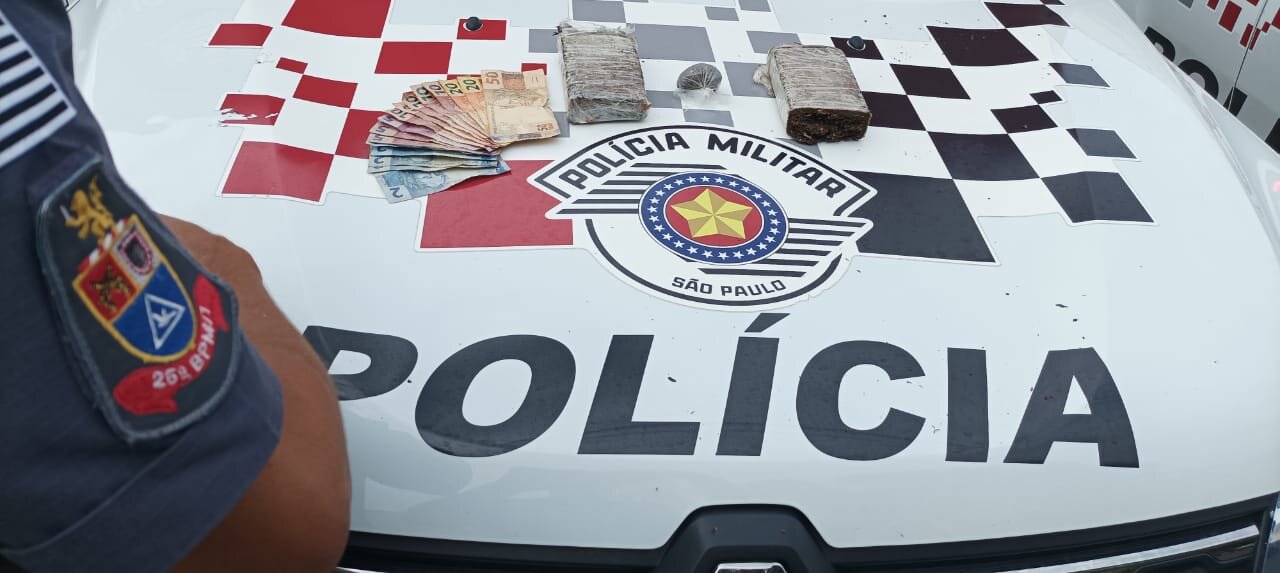 O homem foi abordado e, em busca pessoal, foram localizados em seu poder uma porção de maconha e a quantia de R$ 167,00 em notas diversas. Questionado sobre o que havia arremessado, acabou por confessar que se tratava de um tijolo de maconha.