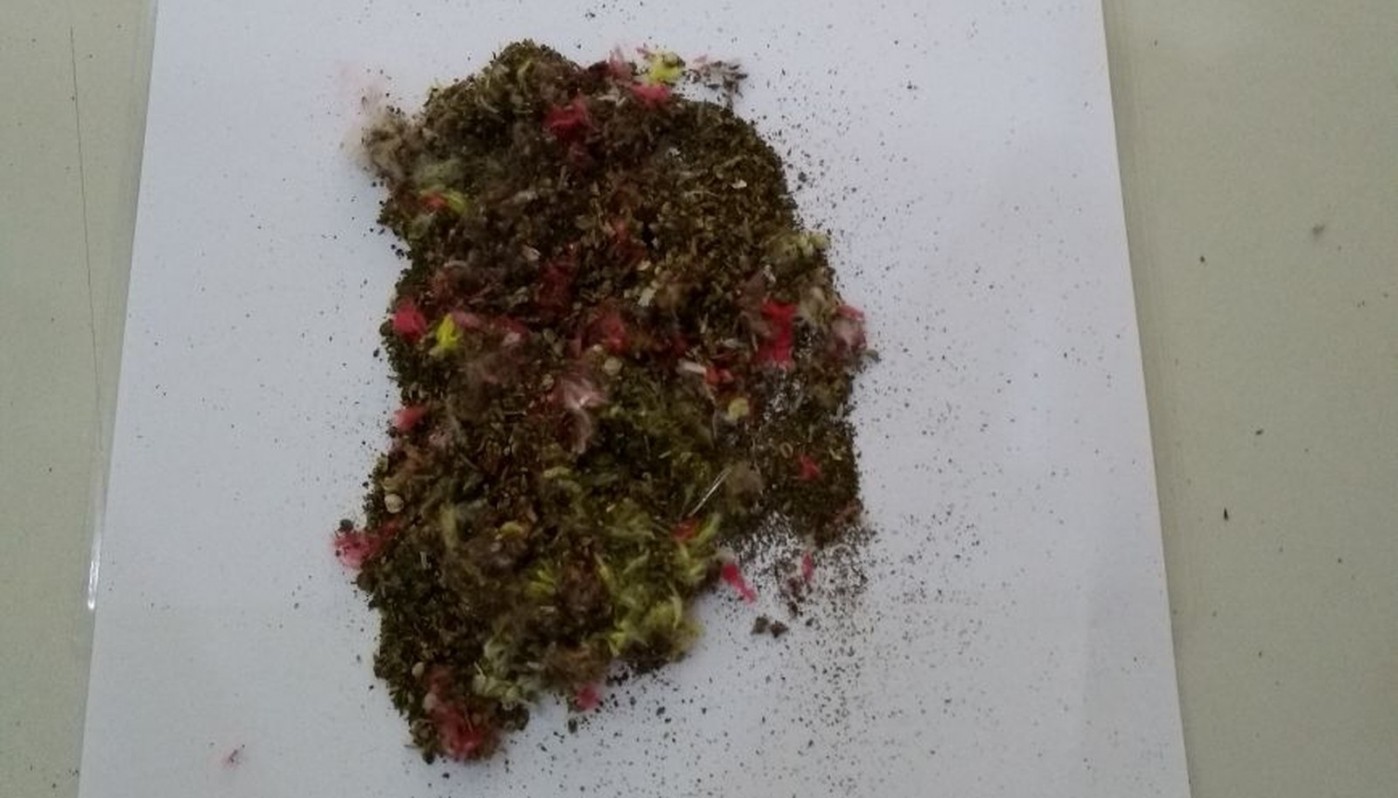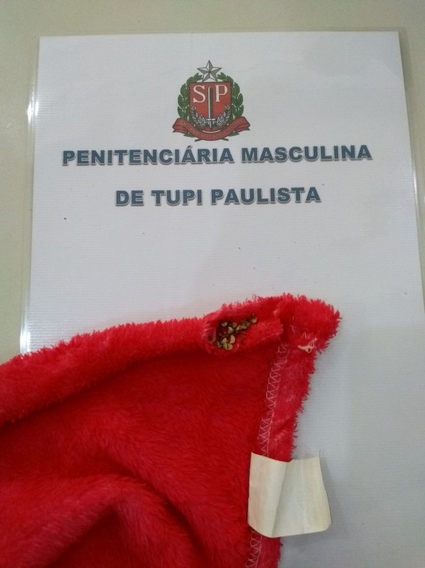 Dentro do embrulho havia um cobertor, mas, ao procederem à revista manual no objeto, na presença do preso, os funcionários encontraram uma substância esverdeada no interior da borda a qual o homem confirmou se tratar de maconha.