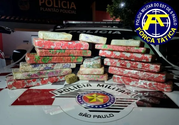 A PM localizou 17 tabletes de maconha, pesando 10,220 kg, e, com a placa da motocicleta, o condutor foi localizado. Após a abordagem, o homem, de 20 anos, confessou o transporte da droga e foi preso em flagrante por tráfico.