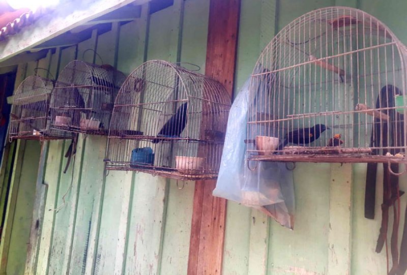 Segundo informações, a equipe realizava patrulhamento ambiental e recebeu informações sobre aves silvestres mantidas em cativeiro em uma residência na Rua Valdevino Fernandes. No local os policiais ambientais informaram o morador sobre a denúncia, sendo permitida a entrada da equipe no quintal para averiguação e foram encontradas as oito aves da fauna silvestre nativa, sendo seis Inhapim, um Pássaro Preto e um Coleirinho Papa Capim.