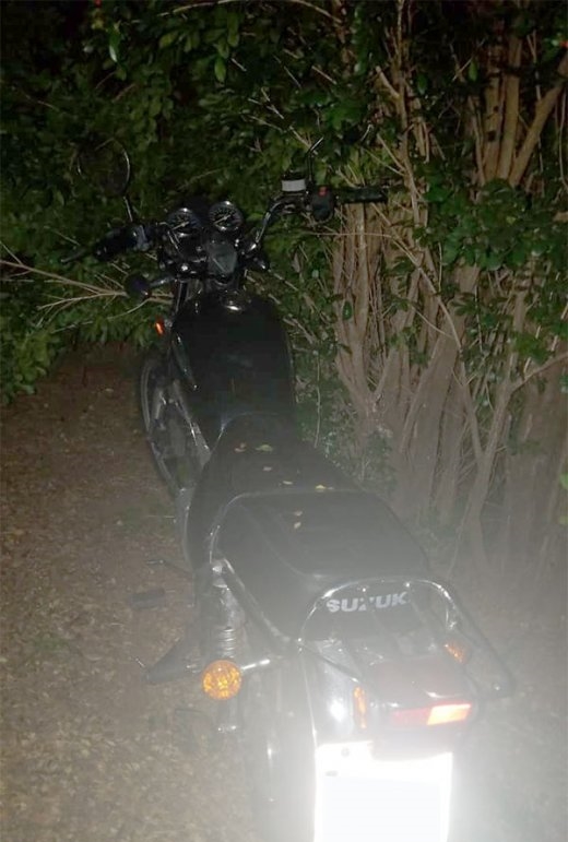 Uma moto Suzuki que havia sido furtada foi encontrada no meio de um arbusto existente no canteiro de flores do trevo de acesso a Iacri. A moto foi furtada na madrugada da última segunda-feira (13) e localizada na noite do dia seguinte pelo cabo Tosqui e cabo Nicolau, do 5º Grupamento de Polícia Militar de Iacri.
