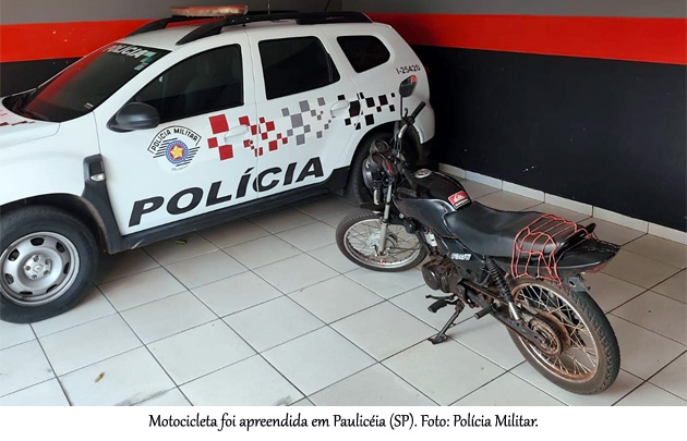 A Polícia Militar apreendeu uma motocicleta em Paulicéia (SP) após um adolescente de 16 anos tentar escapar de uma abordagem em alta velocidade.
