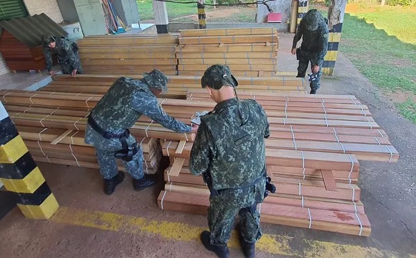De acordo com a corporação, o caminhão do envolvido foi abordado e os policiais verificaram que ele transportava madeira nativa processada, do tipo forro, das espécies cedinho e garapeira sem nota fiscal e sem o Documento de Origem Florestal (DOF).