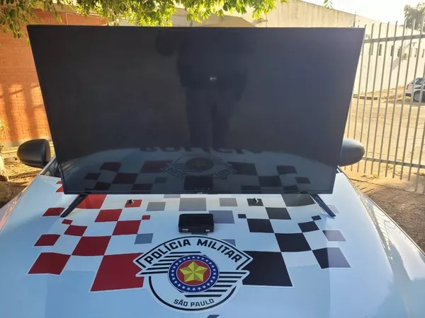 A equipe foi até o endereço fornecido pelo suspeito e localizou o televisor e o aparelho TV box.