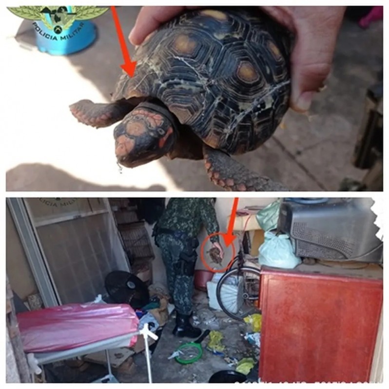Segundo a Polícia Militar Ambiental, os policiais receberam uma denúncia e encontraram sete cachorros, seis gatos e um jabuti vivendo em condições precárias em um casa. Os animais estavam sem alimentos e com sinais de maus-tratos.