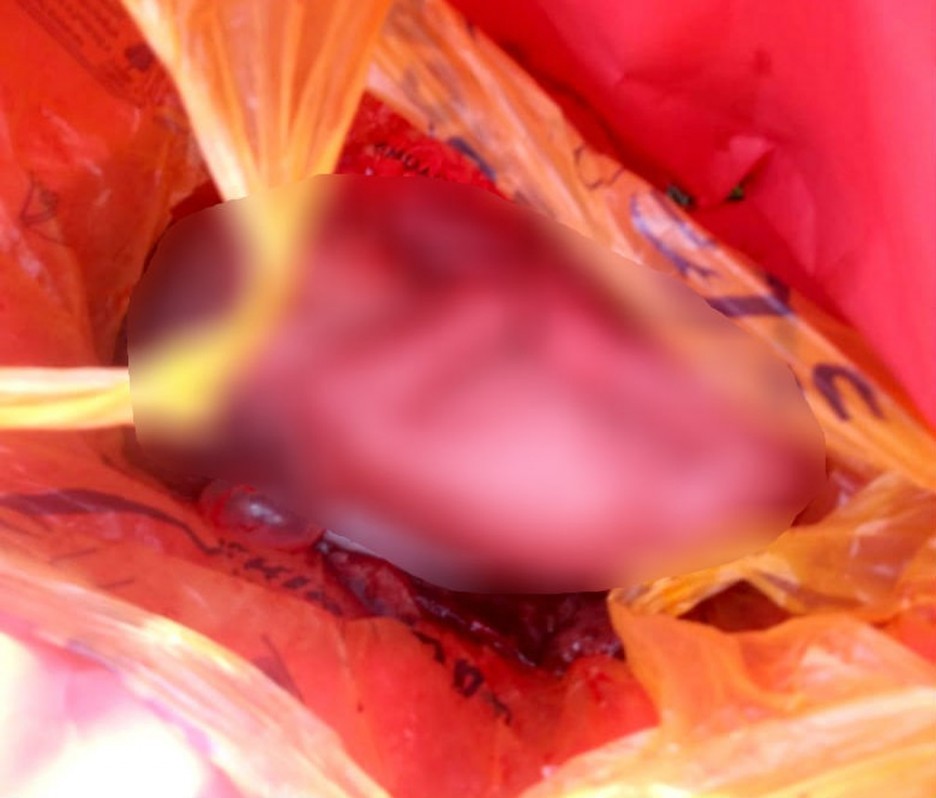 Ao se aproximar de onde vinha o choro, viu que dentro de uma sacola plástica de supermercado estava o menino ainda com o cordão umbilical e a placenta.
