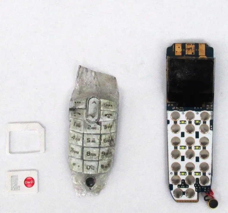 A mulher trazia escondido em sua genitália um invólucro com uma placa de micro aparelho celular sem bateria, com visor e teclado e um chip.