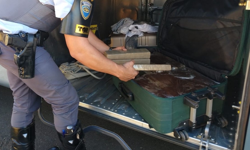 Durante fiscalização, policiais rodoviários abordaram o ônibus de linha regular, que fazia o itinerário Londrina (PR) – Catanduva (SP), e em vistorias localizaram em uma mala 31,900 quilos de maconha.