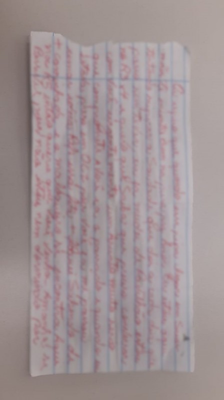 Após visitar o irmão que cumpre pena no CDP, uma mulher tentou sair da unidade portando escondidos 02 (dois) bilhetes manuscritos com número de telefone e perfil de facebook, numa tentativa de burlar a vigilância. Os papéis estavam escondidos entre vasilhames de alimentos trazidos por ela. Após o ocorrido, a visitante foi notificada a comparecer à unidade para prestar esclarecimentos, bem como, fora instaurado procedimento administrativo para apurar os fatos.