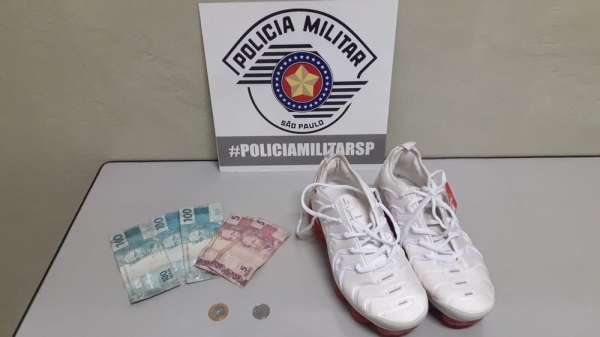 A partir das características do rapaz, os policiais iniciaram diligências e conseguiram detê-lo. Com ele, a PM encontrou um par de tênis novo, ainda com etiqueta, no valor de R$ 349 e ainda R$ 311,50 em dinheiro.