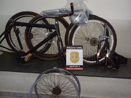 Diversos componentes das bicicletas, como quadros, rodas e pneus, foram recuperados e devolvidos aos proprietários.